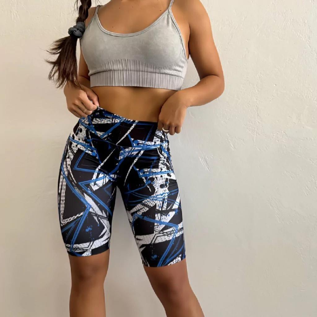 Calza Biker Fitride Sumate a la comodidad y el estilo con la Calza Biker Fitride, diseñada para acompañarte en cada entrenamiento y paseo diario. Esta calza sublimada combina un diseño moderno con líneas azules que le dan un toque muy copado, ideal para quienes buscan destacar con elegancia y practicidad.
