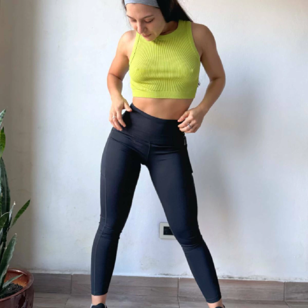 Su diseño liso se destaca por un detalle especial en la cintura que aporta un toque único y moderno, ideal para quienes buscan funcionalidad sin perder el estilo. Perfecta para actividades deportivas o para lucir cómoda en cualquier ocasión.
