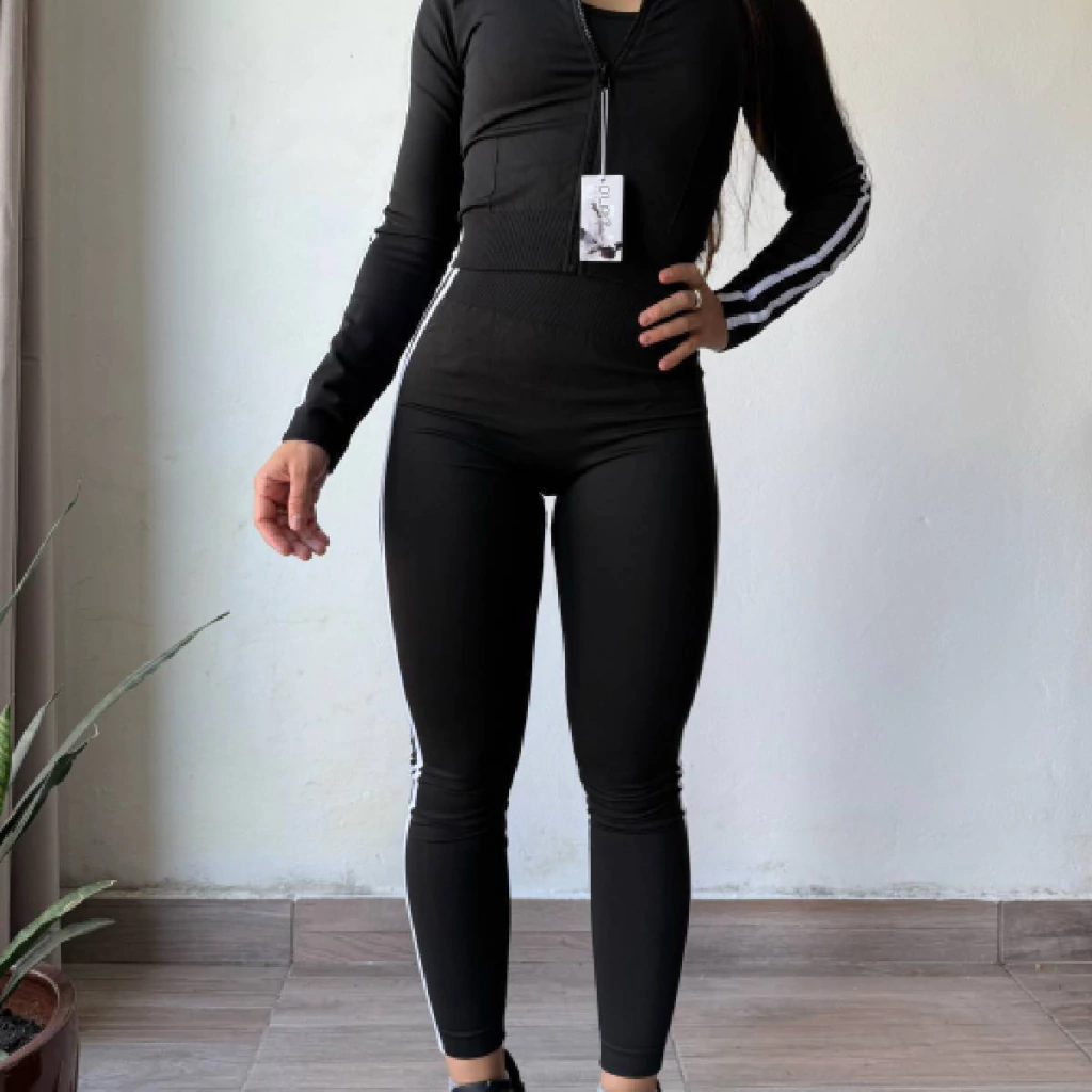 Calza negra con líneas laterales y un sutil frunce, diseñada para potenciar tu rutina de gimnasio. Confeccionada en 85% polyester y 15% spandex, ofrece una elasticidad y comodidad excepcionales. Su diseño totalmente liso combina elegancia y funcionalidad para que te muevas con libertad y estilo. Ideal para quienes buscan una prenda deportiva que se adapta a cada movimiento, sin perder sofisticación. ¡Entrená con confianza y elegancia en cada clase!