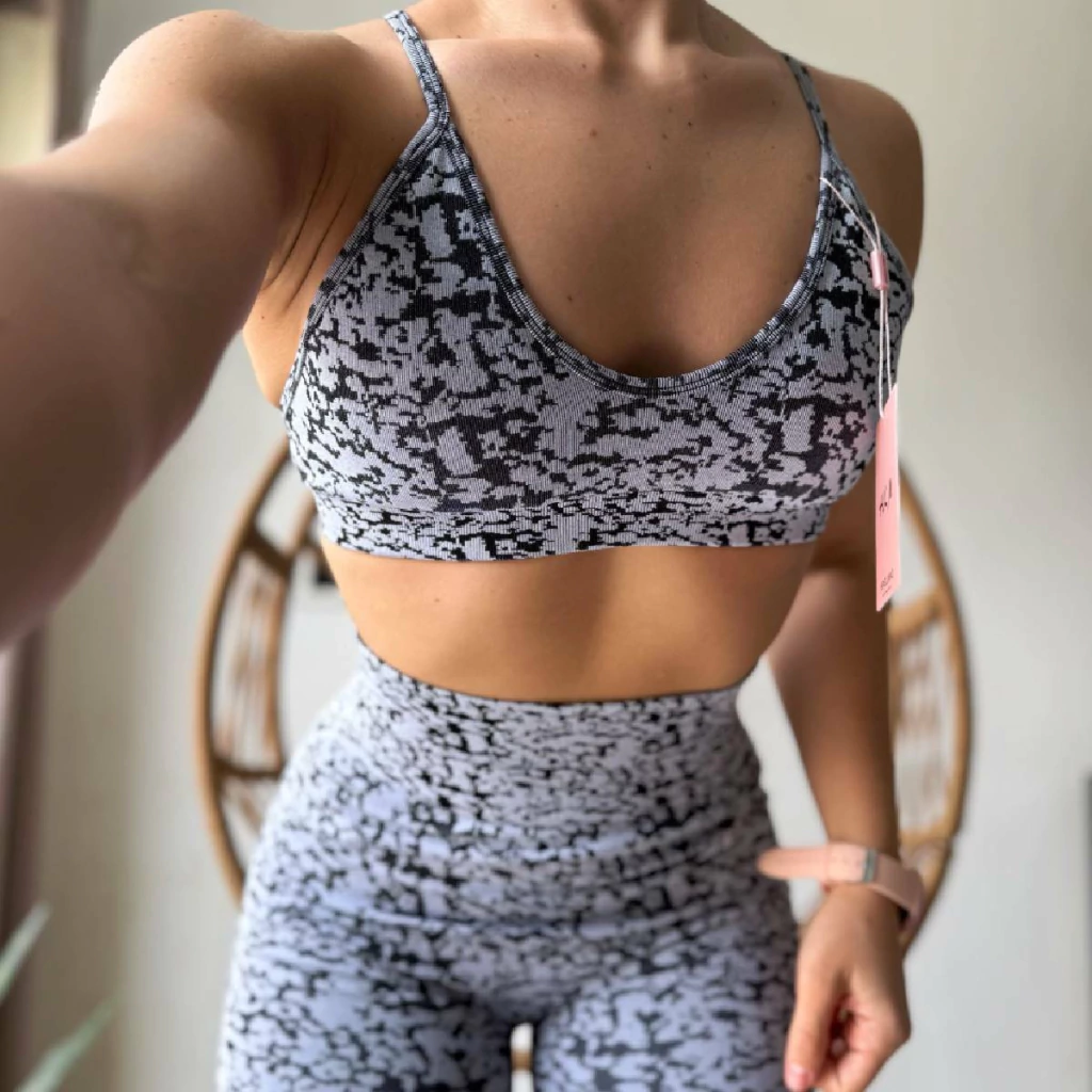 Descubrí el conjunto marca HLM confeccionado con materiales super premium: 60% nylon, 35% polyester y 5% elastano, que garantizan comodidad y durabilidad excepcionales. Este conjunto incluye un short y un top con estampado animal print, ideales para quienes buscan un diseño audaz y sofisticado.