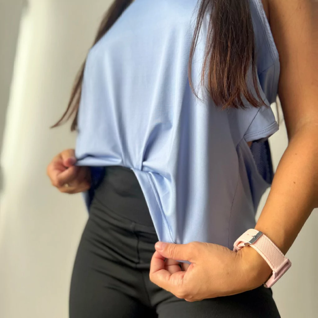 Descubre la musculosa color lavanda, una prenda que combina estilo y comodidad en cada uso. Su diseño abierto permite una amplia libertad de movimiento, perfecta para esos días cálidos donde lo que más deseas es sentirte fresca y a la moda. ✨