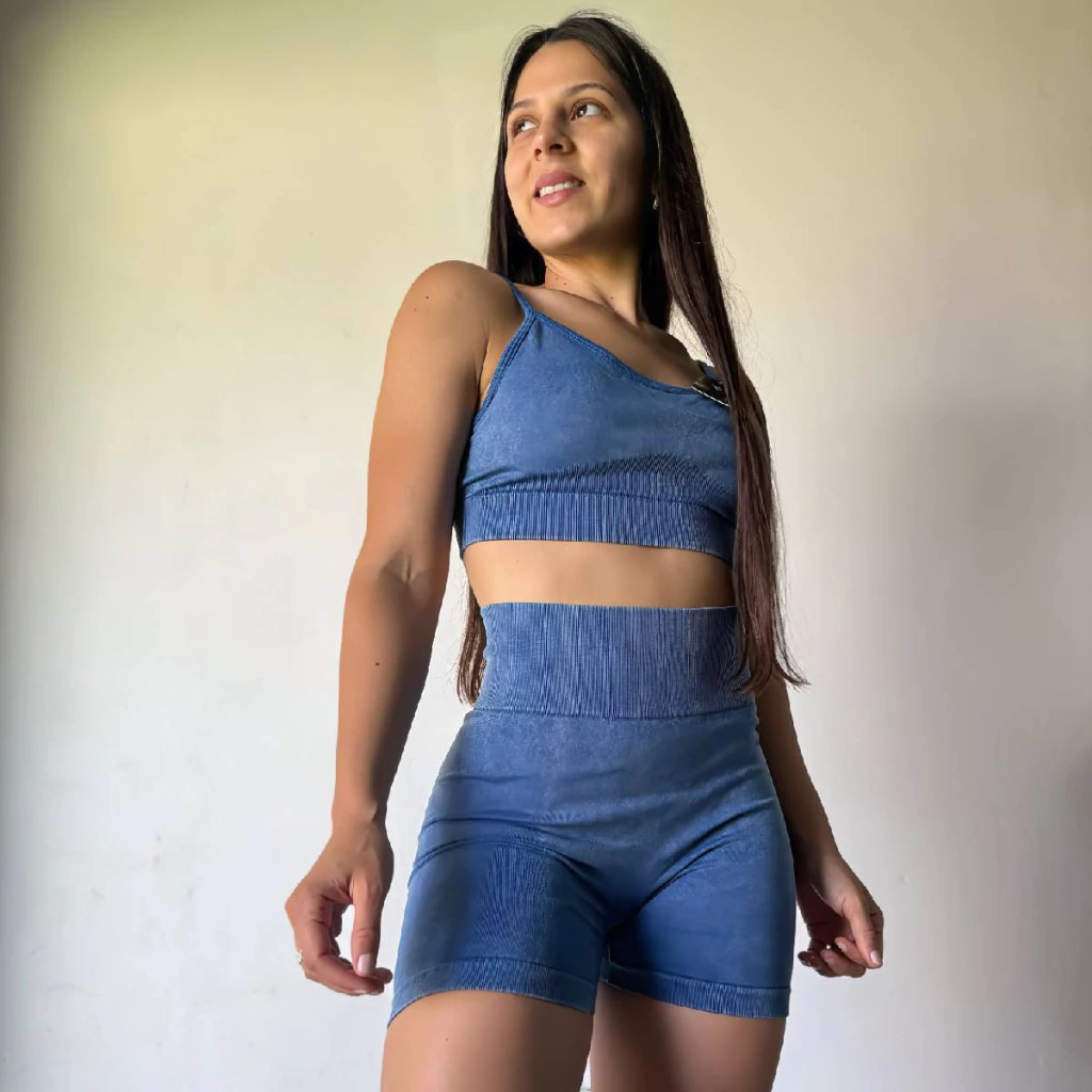Set Power: Estilo y confort que realzan tu figura Descubrí este set dos piezas de top con breteles regulables y short de cintura alta con efecto push up. Su diseño prelavado aporta un look moderno y una textura suave al tacto. Ideal para quienes buscan combinación perfecta entre moda y funcionalidad. Sentite segura y con estilo en cada movimiento con el Set Power.